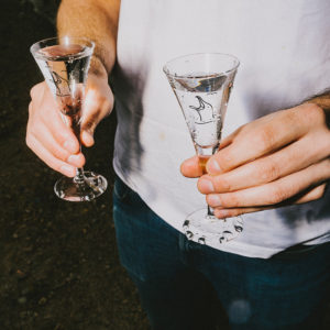 Snapsglas i klassisk design, med den dränkbara måsen tryckt i svart. 5,5 cl stort.
