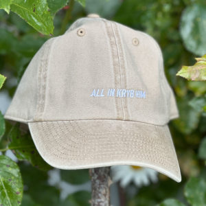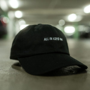 En klassisk Dad Cap i ostrukturerad modell. Broderad vit ALL IN KRYB HIM-text för bästa kvalitet och hållbarhet. Denna version har dessutom ”Om jag kryber hjälp mi him” broderat i nacken.
