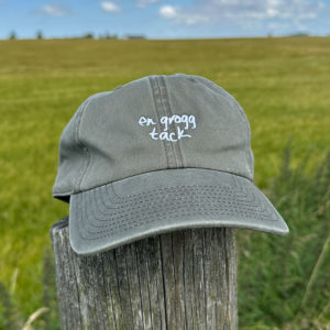 En klassisk Dad Cap i ostrukturerad modell. På kepsens front finns ”En grogg tack” broderat i vitt.