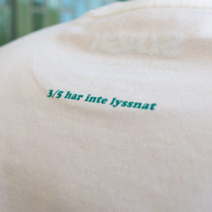 Wow! Podcasten Män i Grupp har äntligen släppt ny merch. Denna gång är det en off white t-shirt i unisexmodell, med grönt tryck på bröstet. Dessutom med betyget 3/5 i nacken, pga att vi på SLASK.gg inte lyssnat på podden.